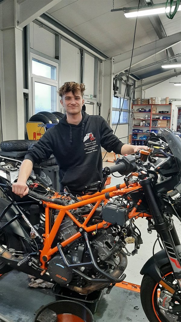 Unser Azubi für alle Fälle mit Benzin im Blut und hat richtig Bock auf seinem Job.